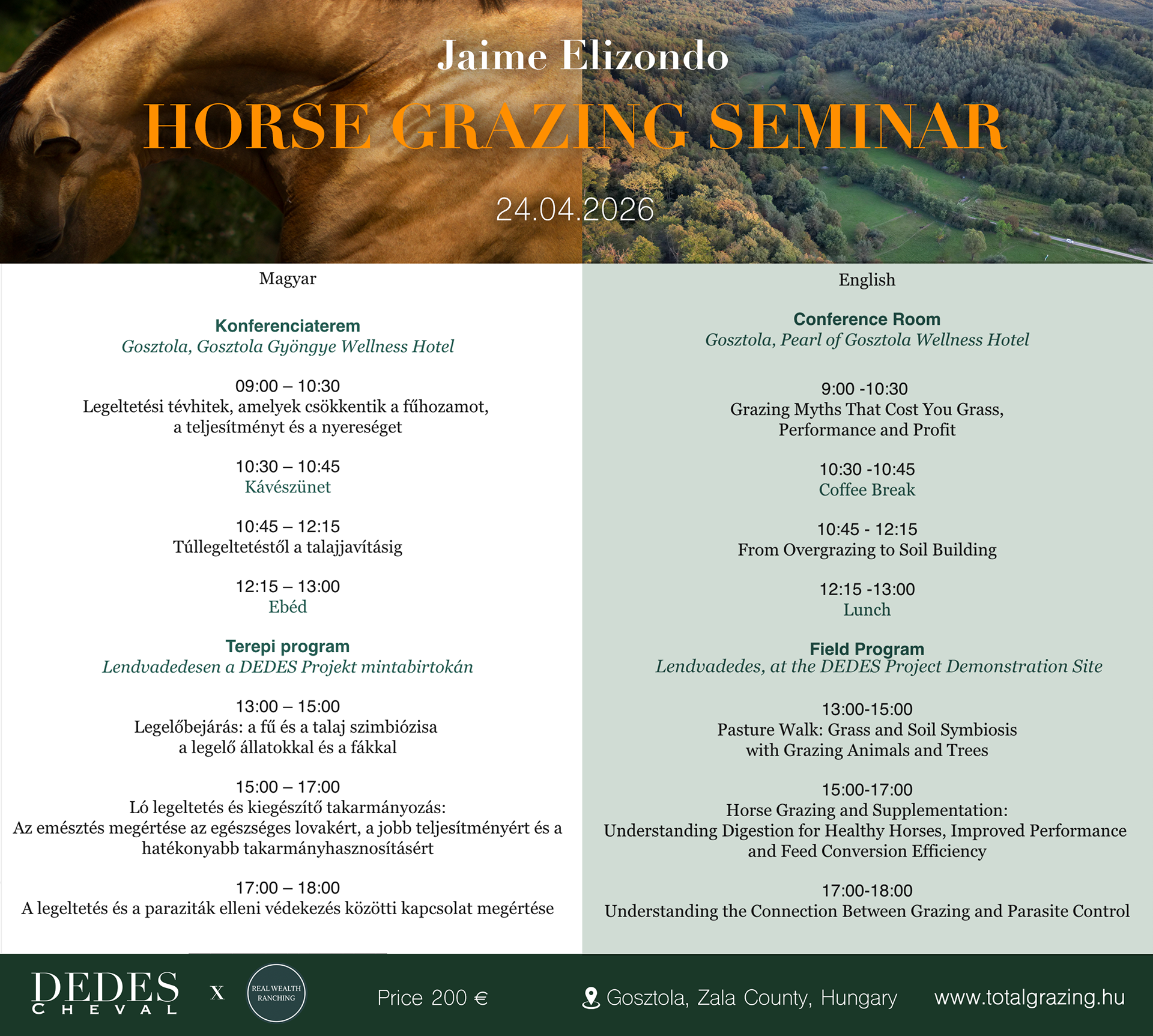 200 € - ebédet és frissítőket tartalmaz